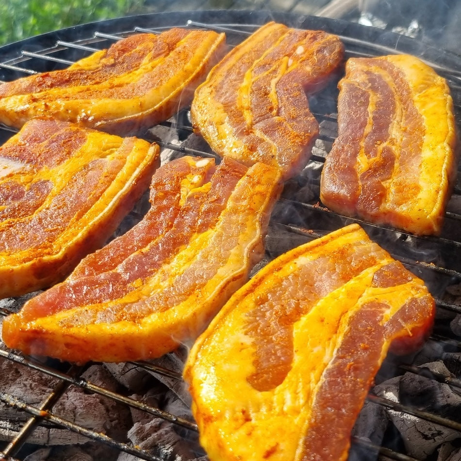 Oprócz karkówki i kiełbasek, możesz również grillować soczyste plastry boczku.